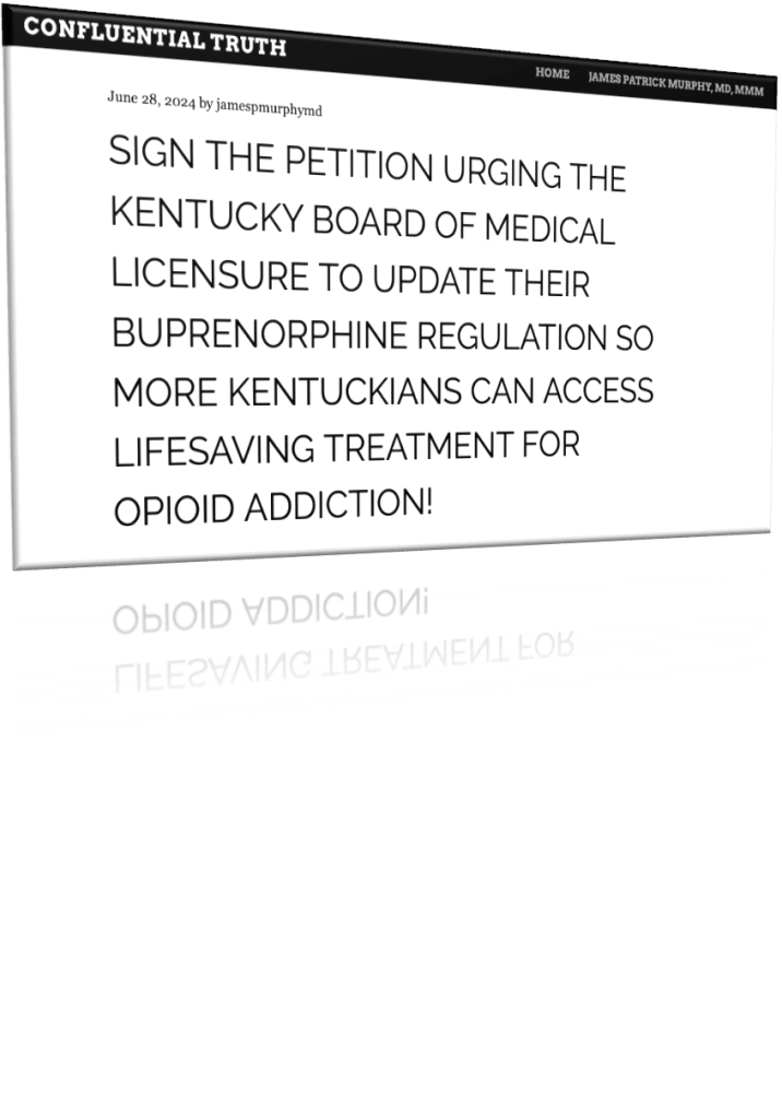 For more information, please go to my blog CONFLUENTIAL TRUTH https://jamespmurphymd.com and start scrolling. Related stories begin with my post on June 28, 2024 about a petition to the Kentucky Board of Medical Licensure…